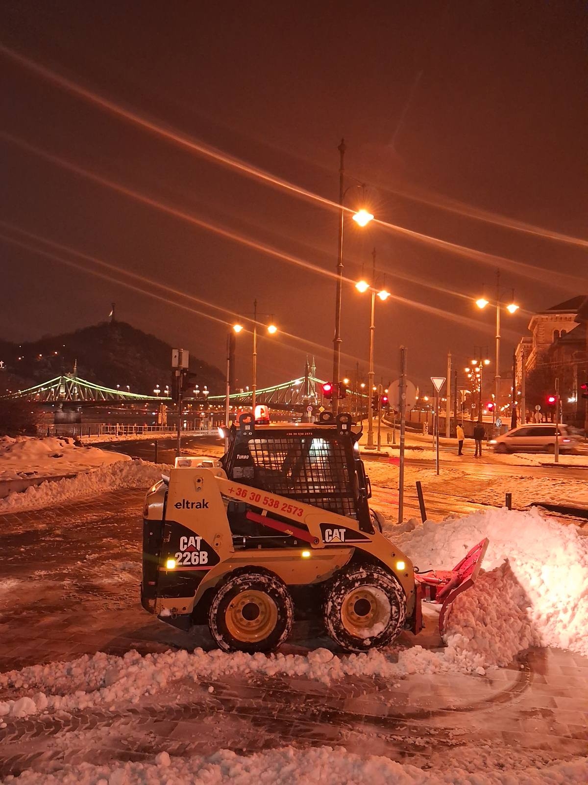 Gépi hótolás - hóeltakarítás gumis élű hólapát ekével Budapesten és Pest megyében éjjel-nappal +36 30 538 2573